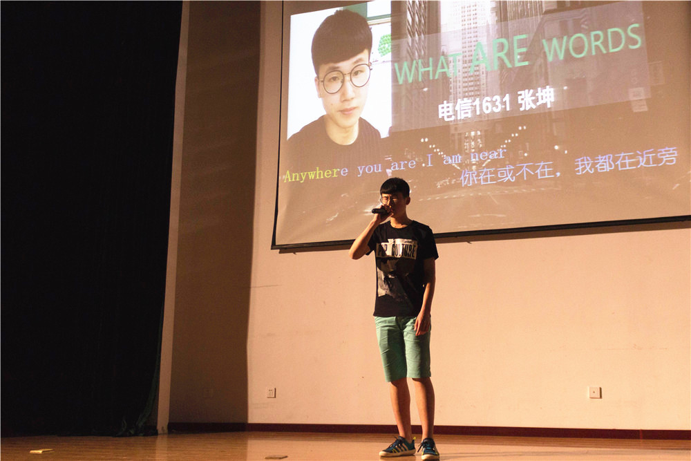 5月25日下午,我院第一届英语文化节英语歌曲比赛精彩上演。经过层层选拔最终胜出的12名选手联袂为在场的近400位观众展现了一场英语的盛会、视听的盛宴。