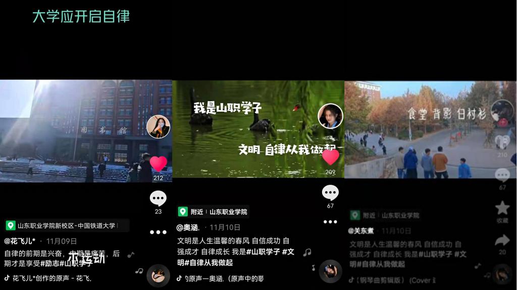 活动紧紧围绕“培养懂技术、会生活、有品位的高素质创新型复合型技术技能型人才”的人才培养定位,结合“自律文明我倡议”“‘律’动青春”“‘三节’you 我践行”“自持自得,律己律心”四个主题,开展了10余项活动。同学们积极为校园文明公约建言献策,做学习表率,以实际行动节水、节粮、节电,提高人文素养。