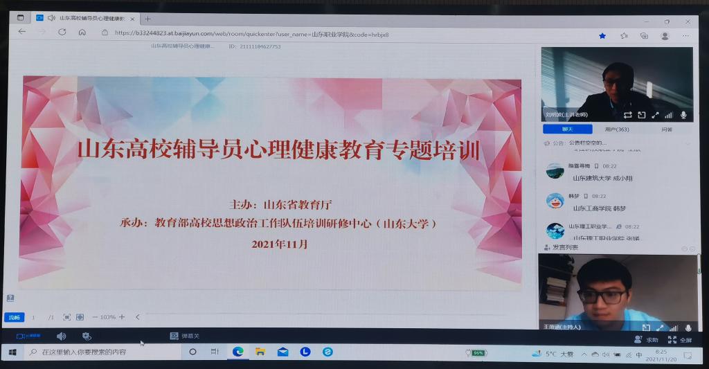 为进一步提升辅导员心理健康教育工作能力,提高心理健康教育工作的针对性、实效性,11月17下午、21日上午,我校组织全体辅导员、学工人员参加了由中共山东省委教育工委举办的全省高校辅导员心理健康教育专题培训班。
