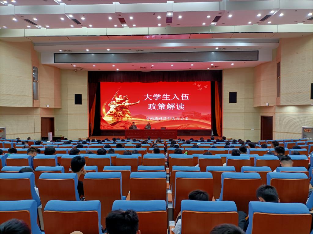 根据国家对大学生入伍的新政策,鼓励大学生积极参军入伍,为军队输送高素质人才。5月28日下午,我校在西报告厅举行了2021年秋季征兵工作宣讲会,济南市高新区武装部征兵办公室参谋李冰、王墨源、学生工作处有关人员、部分有意愿应征入伍的学生代表参加宣讲会。