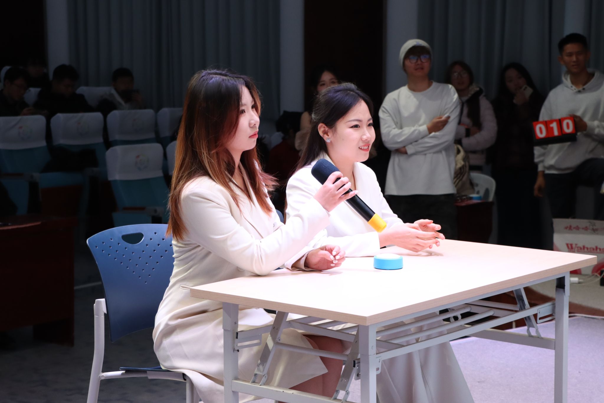 主持人介绍致辞结束后,参赛学子依次登台朗诵。他们或选取经典诗篇,或吟诵原创作品,围绕“励志、坚守、奋进、感恩”主题,以声传情、以诗言志。朗诵环节情感真挚、表现形式多样,配合背景音乐与PPT,充分展现了学子们自信昂扬、坚韧向上的精神风貌。团体诗词抢答环节,各书院代表队团结协作、积极应答。必答题稳扎稳打,抢答题紧张激烈,现场气氛活跃,掌声不断,充分体现了同学们扎实的诗词素养与敏捷的思辨能力。
