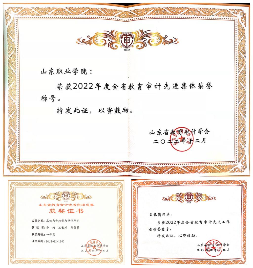 近日,山东省教育审计学会对2022年度全省教育审计系统工作先进集体和先进工作者进行了评比表彰,我校荣获“2022年度全省教育审计先进集体”,财务处处长王长涛荣获“2022年度全省教育审计先进工作者”。同时,在山东省教育审计优秀科研成果评奖中,由李珂、王长涛、马英贤申报的《高校内部控制与审计研究》荣获课题组科研成果一等奖。