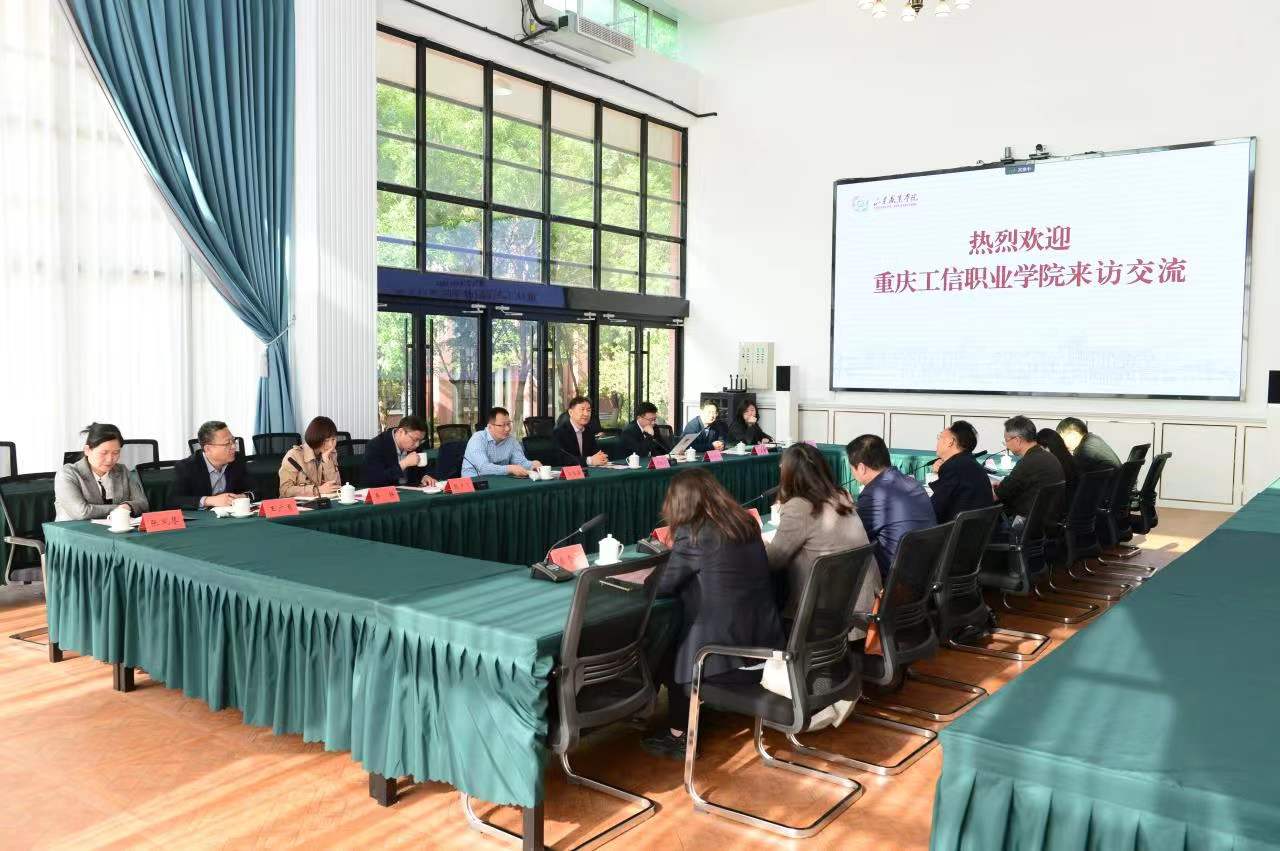 4月26日,重庆工信职业学院党委书记高明一行7人到我校考察交流,院长郭培谦出席会见。