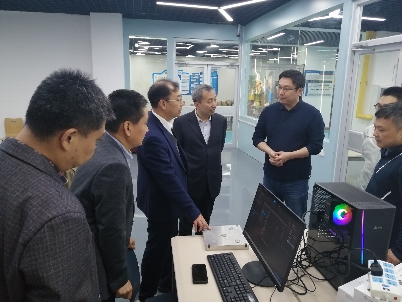 刘振英一行实地考察了我校城市轨道交通实验实训基地、梧桐花开实验室、智能制造虚实融合综合实训基地。