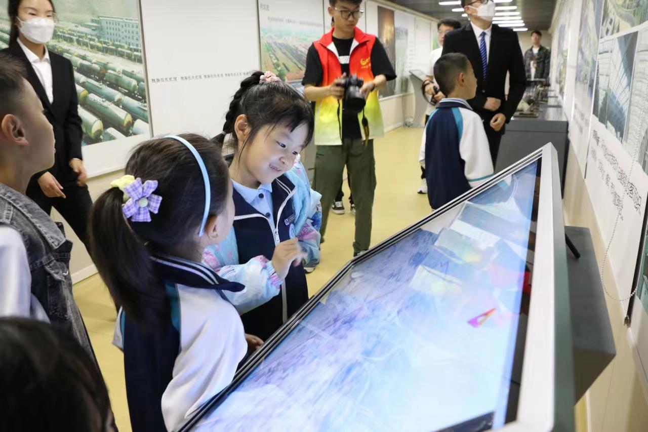 在参观完“山栀花开”书驿站后,同学们来到“山栀花开”红色专列第二站“车同轨”铁路技术史馆,该馆是“全国铁路科普教育基地”“山东省科普教育基地”。在这里,铁路技术史馆的老师和讲解员们热情地接待了同学们和家长,他们用通俗易懂的语言对我国铁路技术发展史进行了详细有趣的讲解,馆内挂图、互动体验和模型展示孩子们更加直观地了解了不同历史时期我国铁路事业的发展历程,认识了各种类型的铁路机车及其用途。史馆内丰富的铁路机车模型和机车配件更让孩子们目不暇接,参观中,同学们积极与讲解员互动,现场一阵阵响起热烈掌声。