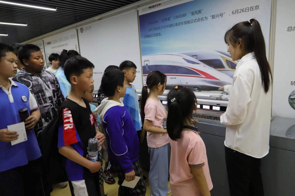 参观了“车同轨”铁路技术史馆,史馆的老师和讲解员们用通俗易懂的语言向孩子们介绍了我国的铁路技术发展史,孩子们近距离感受着史馆内的铁路机车模型和机车配件,对不同时期我国铁路事业的发展历程有了更加直观的了解。