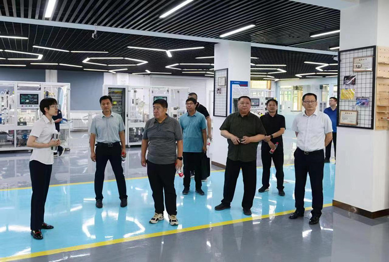 李建国一行实地考察了我校动车组机械师实训中心、新一代信息技术产业学院、智能制造虚实融合公共实训基地等地,随后召开座谈会。