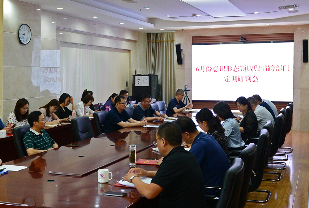 6月30日,我校在图书行政楼701会议室召开意识形态领域舆情跨部门定期会商研判会议。院长郭培谦出席会议并讲话。会议由宣传部部长杜树元主持。