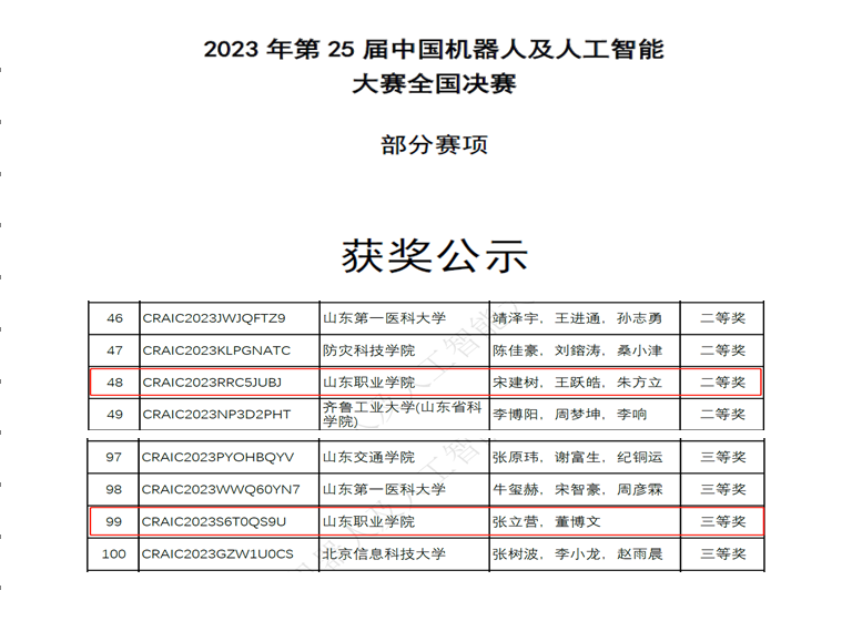 近日,第二十五届中国机器人及人工智能大赛总决赛获奖名单揭晓,我校在与全国125支参赛团队的激烈角逐中获得二等奖和三等奖的好成绩。在之前的省赛选拔赛中两支队伍双双获一等奖,取得了晋级全国总决赛的资格。