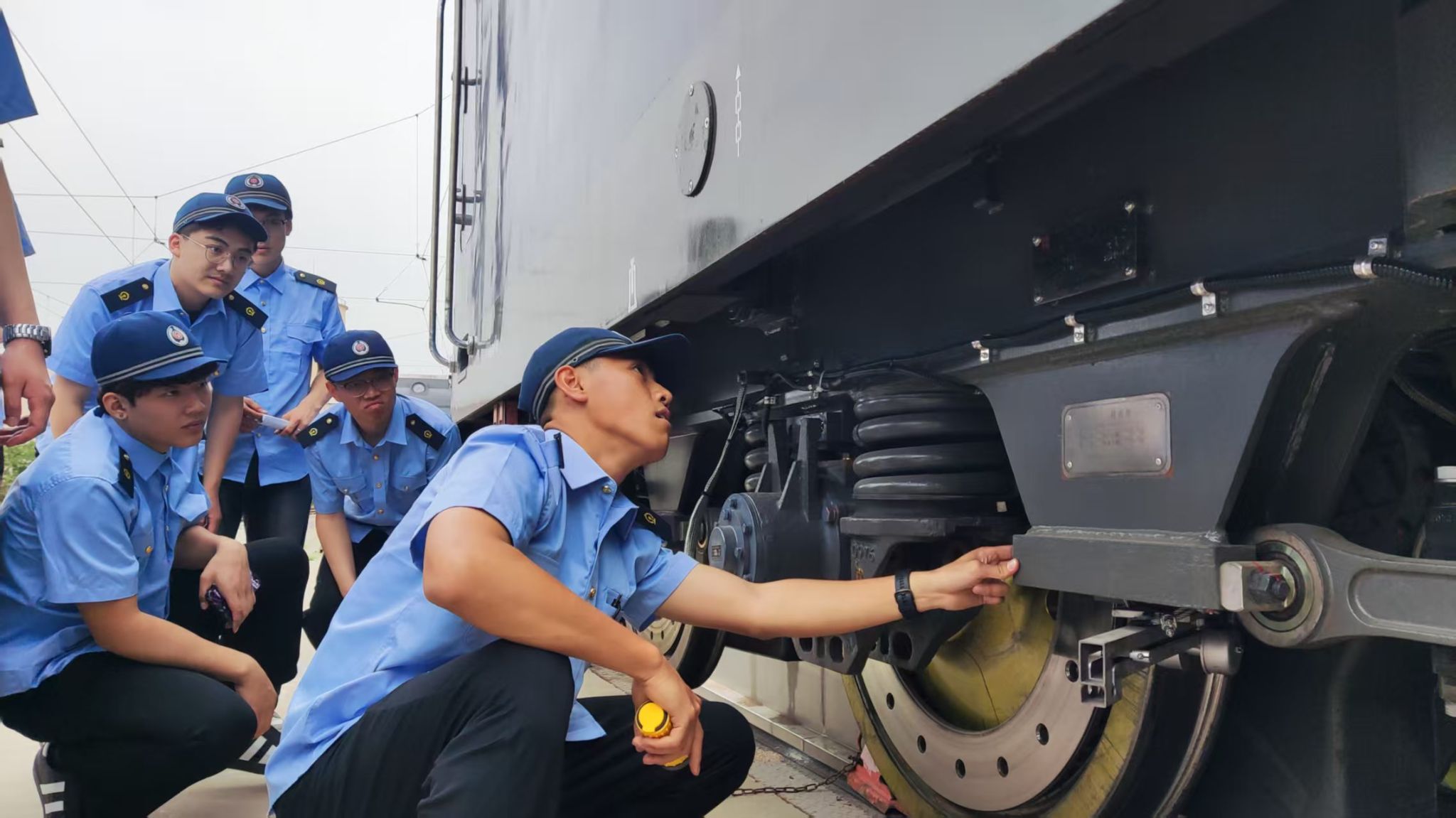随后,学生们深入练功场,开展HXD3型电力机车走行部检查与电气试验等模块化实训项目。企业技能大师围绕机车走行部检查、活件故障排查、机车电气试验等内容,进行细致讲解。同学们分组协作,认真研读教学资料要求,严格按照操作规程对机车进行检查。“这种在真实机车设备上的实践操作,让我对课本知识有了更直观的理解,也增强了我对未来职业的信心!”参与实训的学生兴奋地说道。