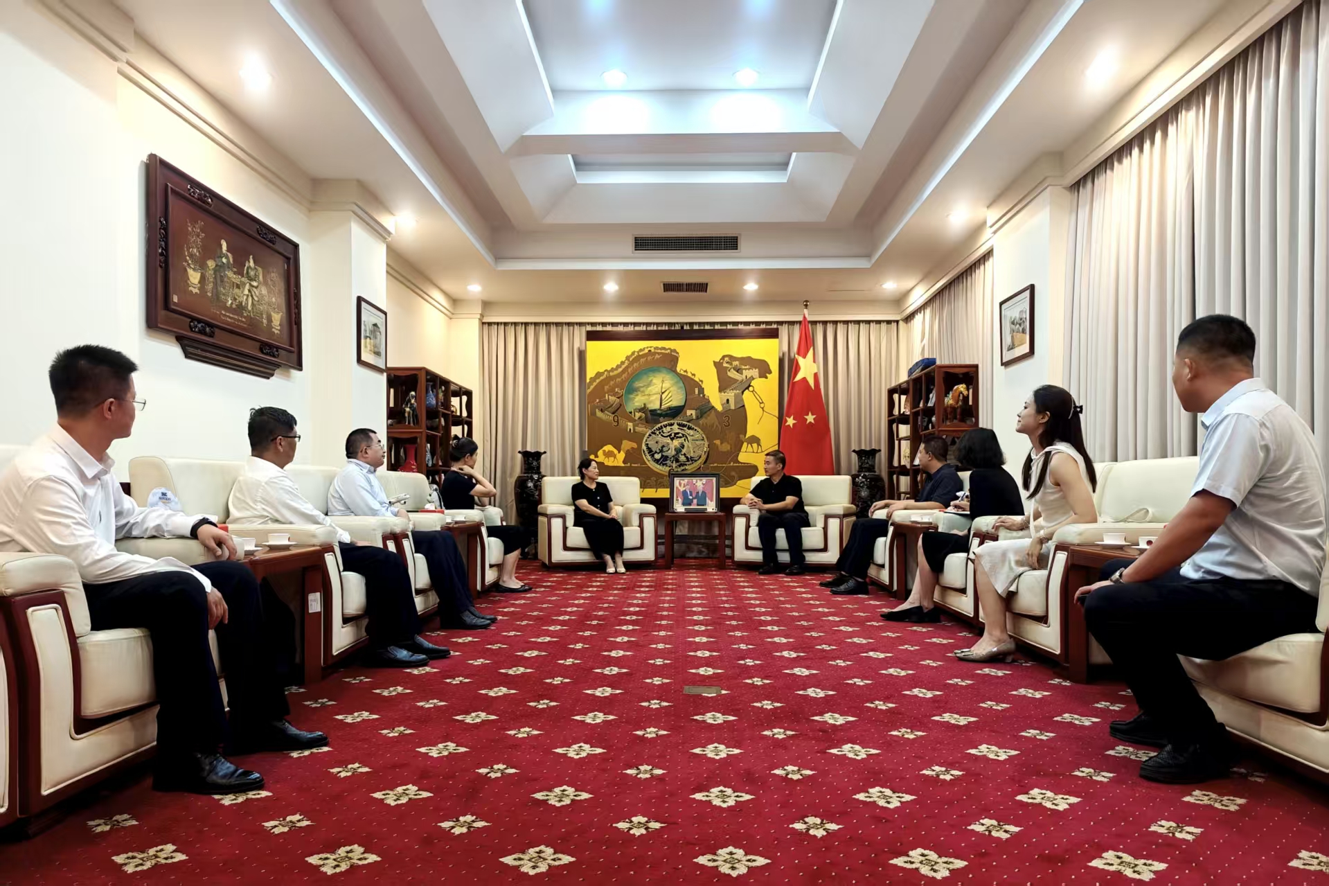 9月26日,团组一行还拜访了中国驻胡志明市总领事馆,参赞级商务领事杨苗出席会见。杨苗简要介绍了越南国家和胡志明市经济发展情况,重点介绍了越南国家轨道交通现状及发展趋势、中越双方在轨道交通建设运营方面的合作现状。赵凤文介绍了学校发展情况和特色优势,希望在总领事馆指导下,积极拓展国际交流合作领域,进一步做好职教“随企出海”工作。