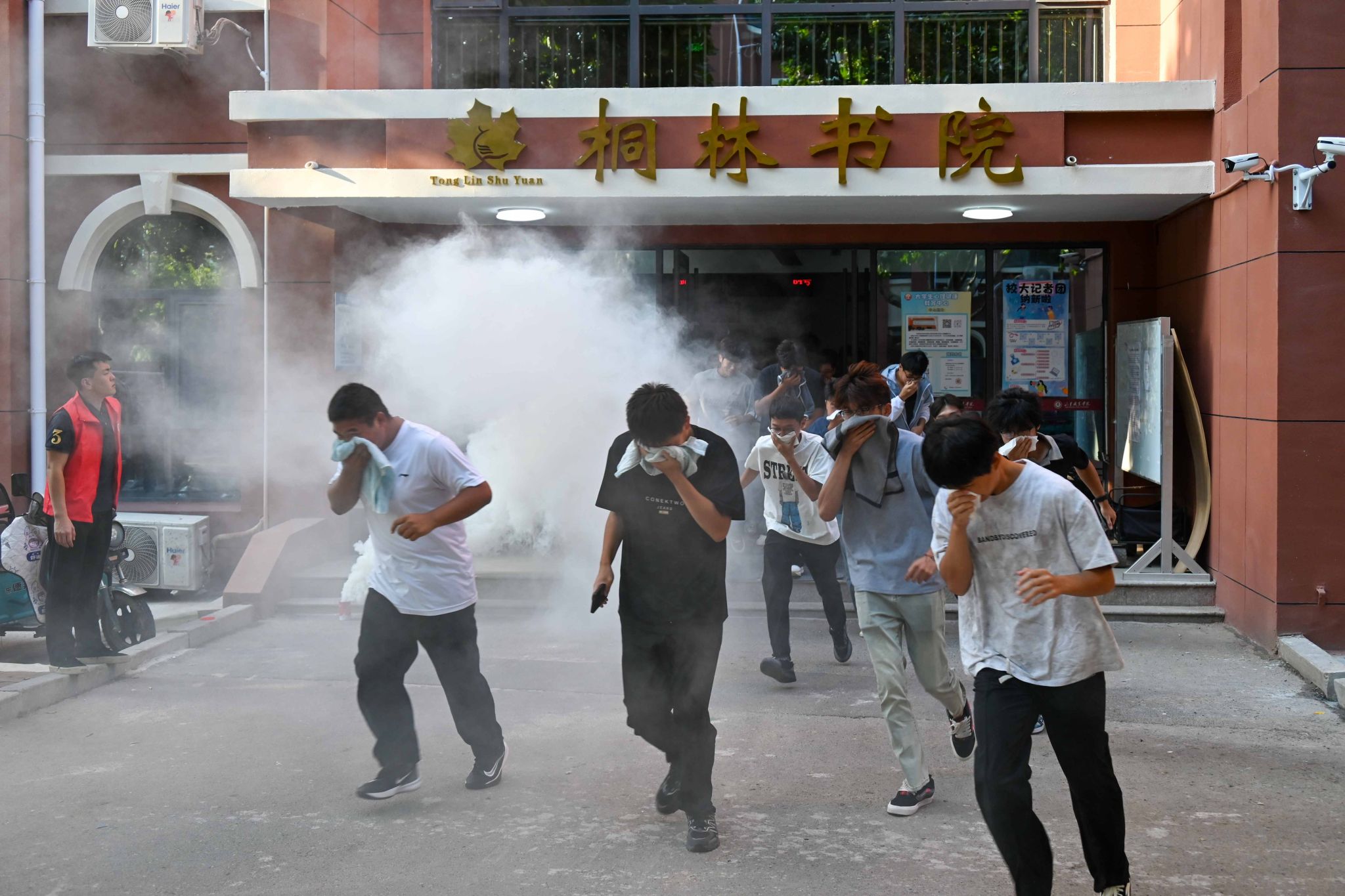 9月25日,安全保卫处联合各书院开展了新生疏散逃生演练活动。全体大一新生按照演练方案,分别从12栋学生公寓进行紧急疏散,各楼层疏导员指挥同学们用湿毛巾捂住口鼻、弯腰低姿,沿着疏散指示标志和安全出口有序撤离并集合到预定疏散区域。整个演练过程安全、规范、快速、有序,从疏散到集合,平均用时4分钟。