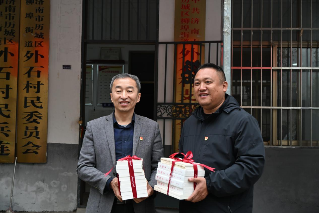郭鹏在讲话中表示,此次活动是学校党委推动党建引领事业发展、服务地方经济社会发展的具体实践。希望双方以协议签署和基地揭牌为起点,持续探索校地合作新路径,努力打造可复制、可推广的党建共建示范点,谱写互利共赢新篇章。他代表学校向外石村党支部赠送理论学习书籍。