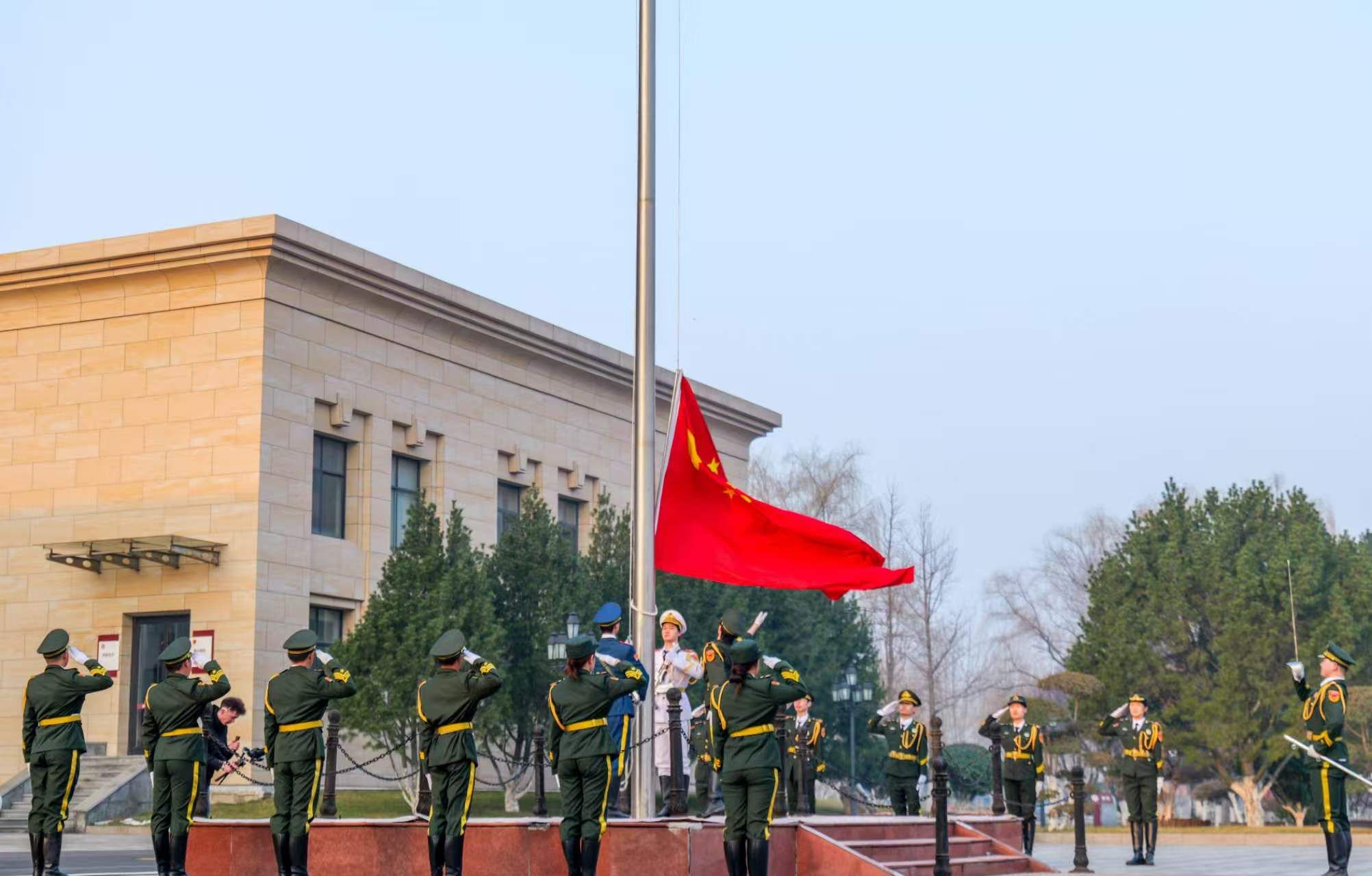 清晨时分,仪式现场庄严肃穆。国旗护卫队迈着铿锵有力的步伐,昂首挺胸护送五星红旗入场。伴随着激昂雄壮的《义勇军进行曲》,鲜艳的五星红旗冉冉升起。全体师生行注目礼,齐声高唱国歌,嘹亮的歌声展现了新时代青年昂扬向上的精神风貌与深沉炽热的家国情怀。