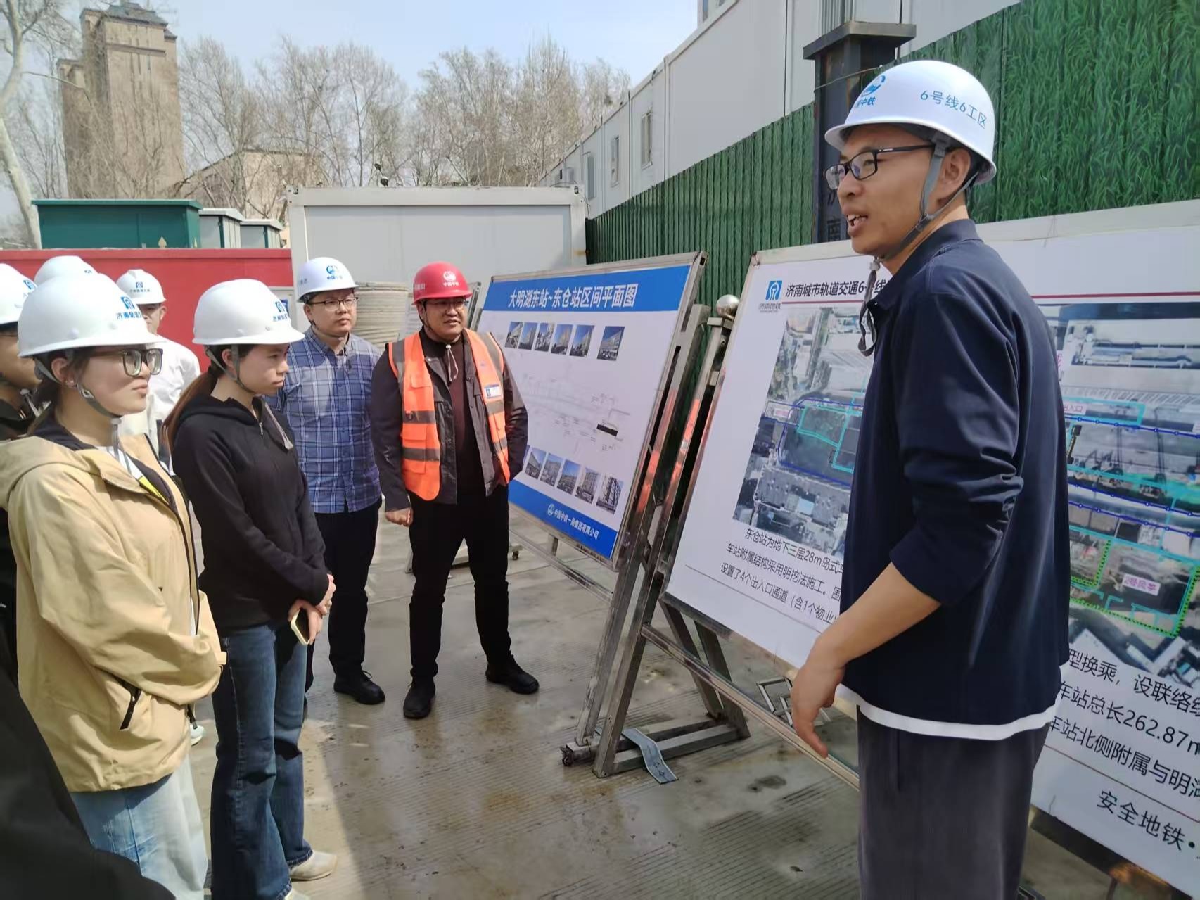 3月27日,我校“铁驰先锋”现场工程师班学员走进济南地铁6号线东仓站施工现场,开展“课堂+工地”沉浸式实践学习。