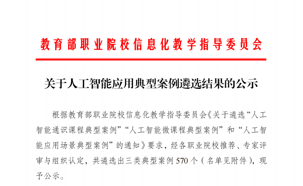 近日,教育部职业院校信息化教学指导委员会公布了“人工智能应用典型案例”遴选结果。我校王帅主持的《基于“端-边-云”架构的大学生体测效率提升调查》和杨文虎主持的《大模型助评场景应用》申报的两项案例获评“应用场景优秀典型案例”,充分展现了学校在人工智能赋能职业教育改革中的积极探索与显著成效。