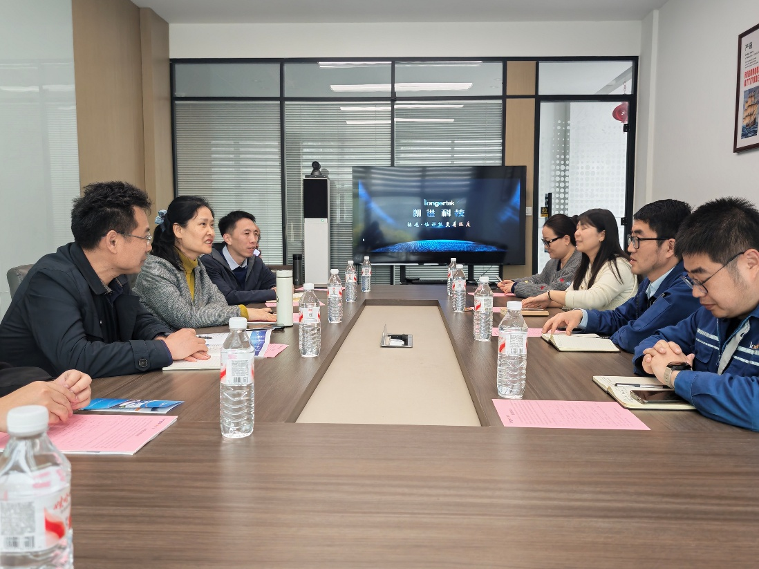 在山东朗进科技,调研团队详细了解了企业发展历程、核心技术及人才需求,围绕人才共育、科研合作等关键事项进行了深入交流并初步达成合作意向。调研团队还实地参观了轨道空调总装车间,感受行业前沿技术与生产实操模式。