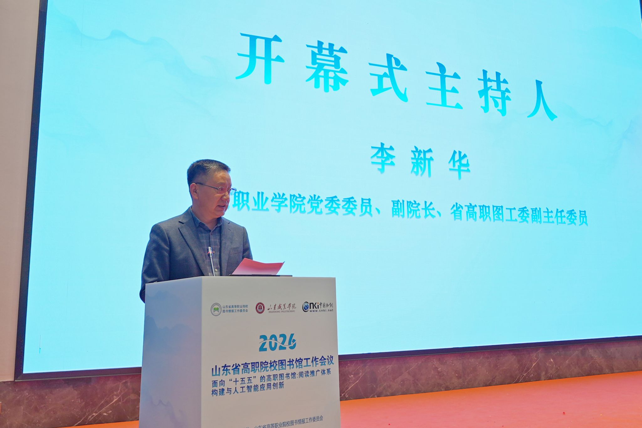 会议由山东省教育厅指导,山东省高等职业院校图书情报工作委员会(以下简称“省高职图工委”)主办,我校承办。来自全省50所高职院校的图书馆馆长、业务骨干及业界代表共100余人齐聚泉城,共话发展新机遇。会议由副院长李新华主持。