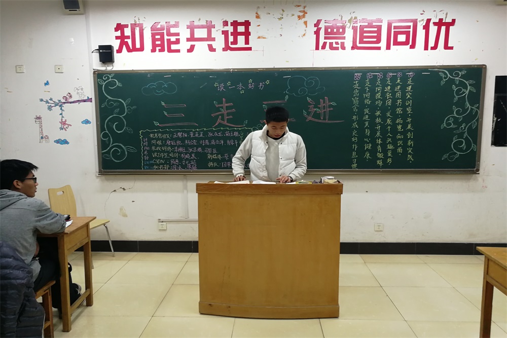 “三走三进”,即走出宿舍、走下网络、走向操场;走进社团、走进图书馆、走进实训室。“三走三进”活动旨在使同学们能够摆脱网络依赖性、身体惰性,提高体质,发展个人能力。通过主题班会,同学们在思想认识上发生很大转变,纷纷表示要养成良好的生活学习习惯,做到学习生活有目标、有计划、有行动、有意义,真正实现自身的全面发展。