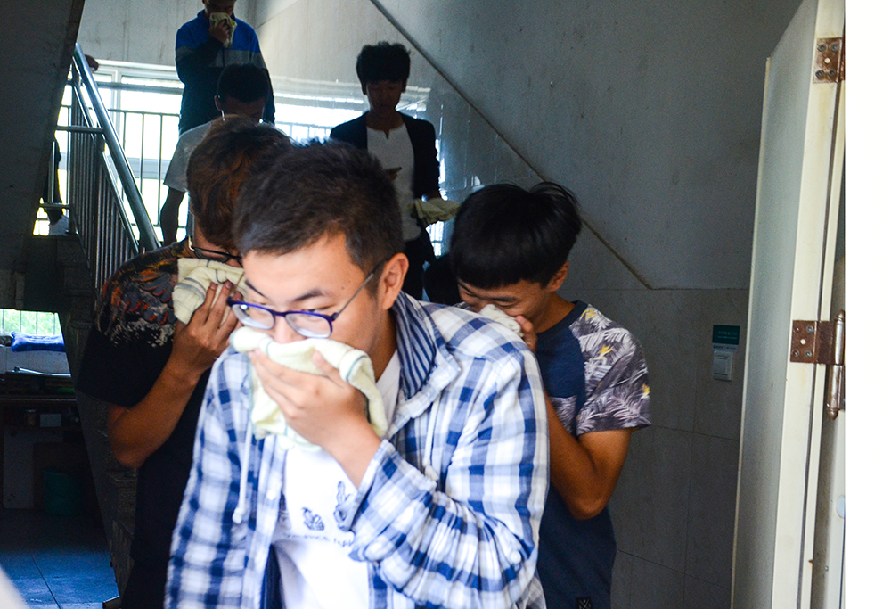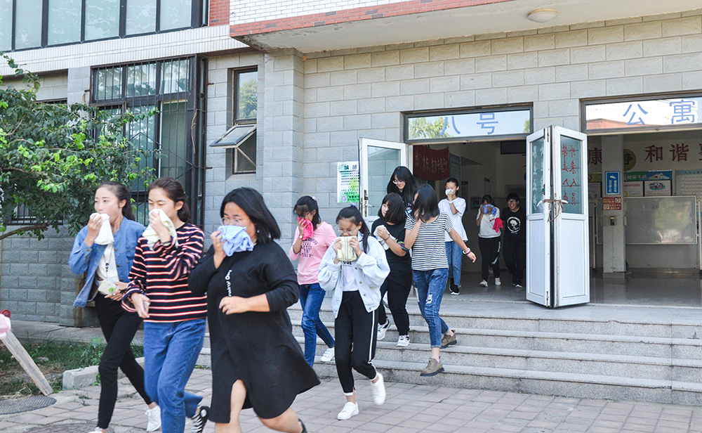 9月28日,铁道供电与电气工程系开展了紧急疏散演习活动,随着响起的阵阵哨声,该系2017级全体新生用毛巾掩鼻,弯腰从各个宿舍楼内进入学校西篮球场集合。从疏散到集合,500多名新生共用时间不到5分钟!