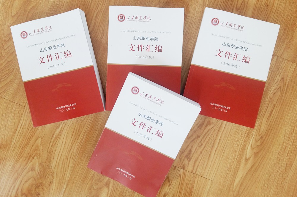 为贯彻实施学院章程,进一步加强管理制度建设,建立健全学院制度建设工作档案,近日,学院办公室编制印发了《山东职业学院2016年度文件汇编》。