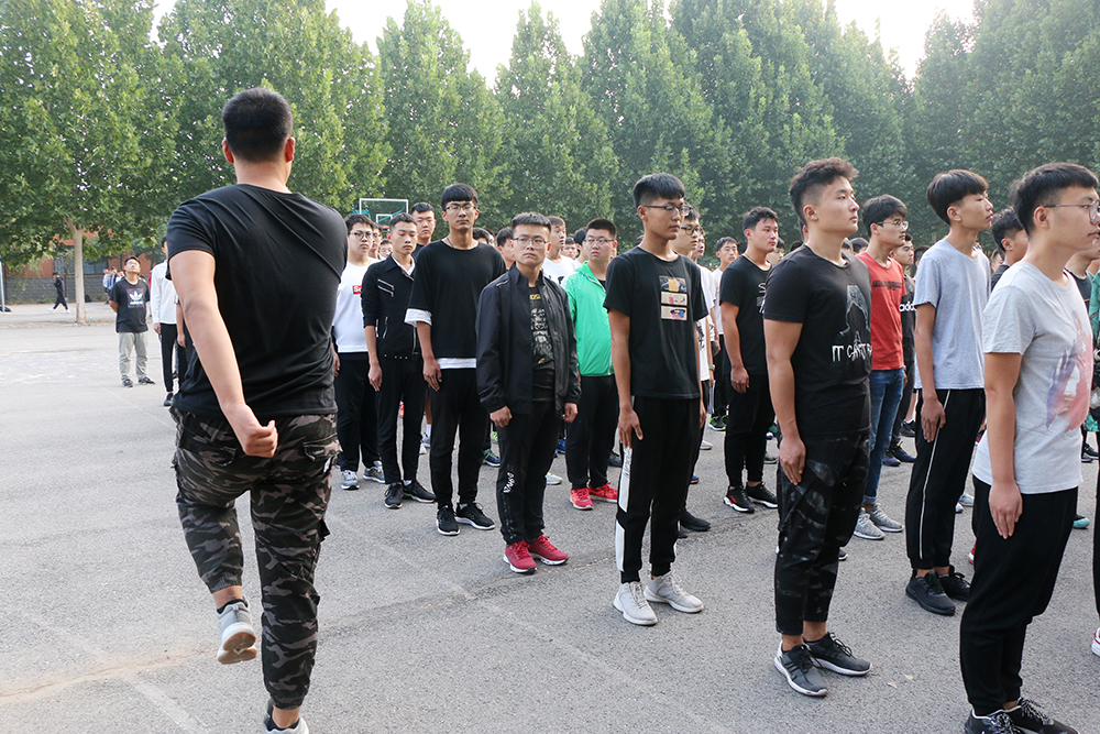 “稍息,立正,向右看——”,班级助理洪亮的口令声一响起,队形在转瞬之间变得整齐划一,班级助理们详细讲解动作要领,尽力做好示范动作,同学们一遍又一遍接受训练,砸地有声的踏步,规范到位的动作,嘹亮的口号,整齐的步伐,飒爽的英姿,展现出了“千禧一代”奋发向上、顽强拼搏的精神风貌。