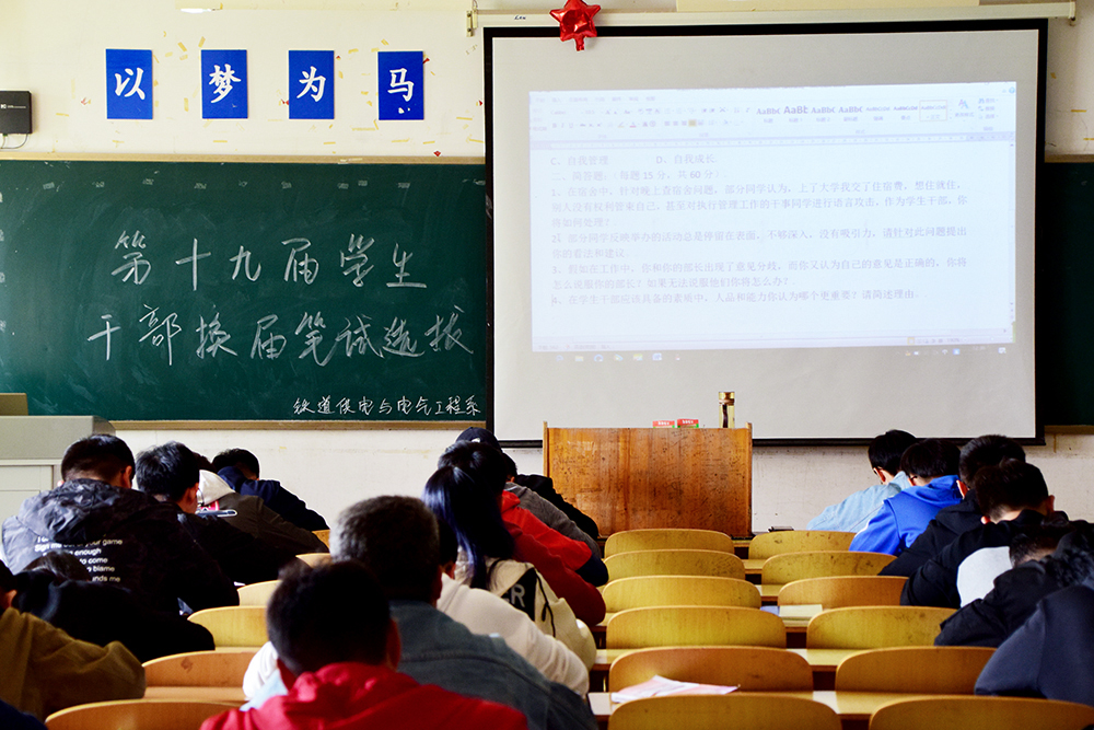 为进一步强化学生组织队伍建设,充分发挥学生组织自我管理、自我服务、自我教育的积极作用,近期,铁道供电与电气工程系开展学生干部公开选拔工作。系主任兼党总支书记林毓梁,学工办主任李亚飞,团总支书记范媛媛,辅导员冯国英、李井铭、薛高芳组成领导小组,2016级全体学生干部组成评委团共同参与选拔工作。101名2017级学生报名参加此次选拔。