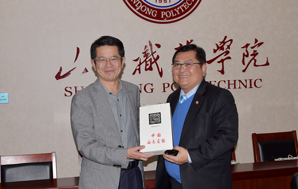 秦河对泰国皇家理工大学校长一行到访表示欢迎,并介绍了我院办学特色、办学优势及招生就业等情况。双方在师资培养、学生交换、课程建设、实践教学建设方面交换了意见,就泰方派轨道交通相关专业教师来我院进修,为我院学生提供全额奖学金,双方共建轨道交通学院等合作达成了初步意向,双方均希望能进一步加深各方面的国际交流与合作。会上,双方互赠了传统特色纪念品。
