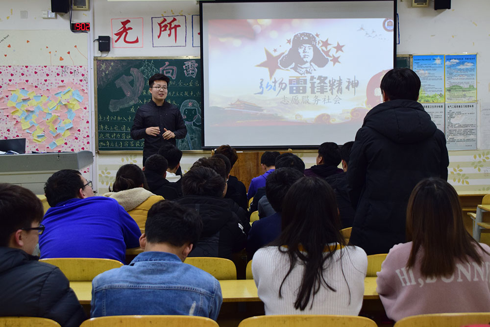 “人的生命是有限的,可是,为人民服务是无限的,我要把有限的生命,投入到无限的为人民服务之中去。”班会上,各班班长用PPT展示和播放视频《雷锋日记》,向同学们详细介绍了雷锋生平事迹,并诠释了什么是“雷锋精神”,使雷锋精神深入每位同学心中。同学们纷纷表示,学雷锋的行动不能停止,雷锋精神不能丢,要用实际行动温暖身边的人,通过力所能及的点滴小事将青春正能量传播到全社会。