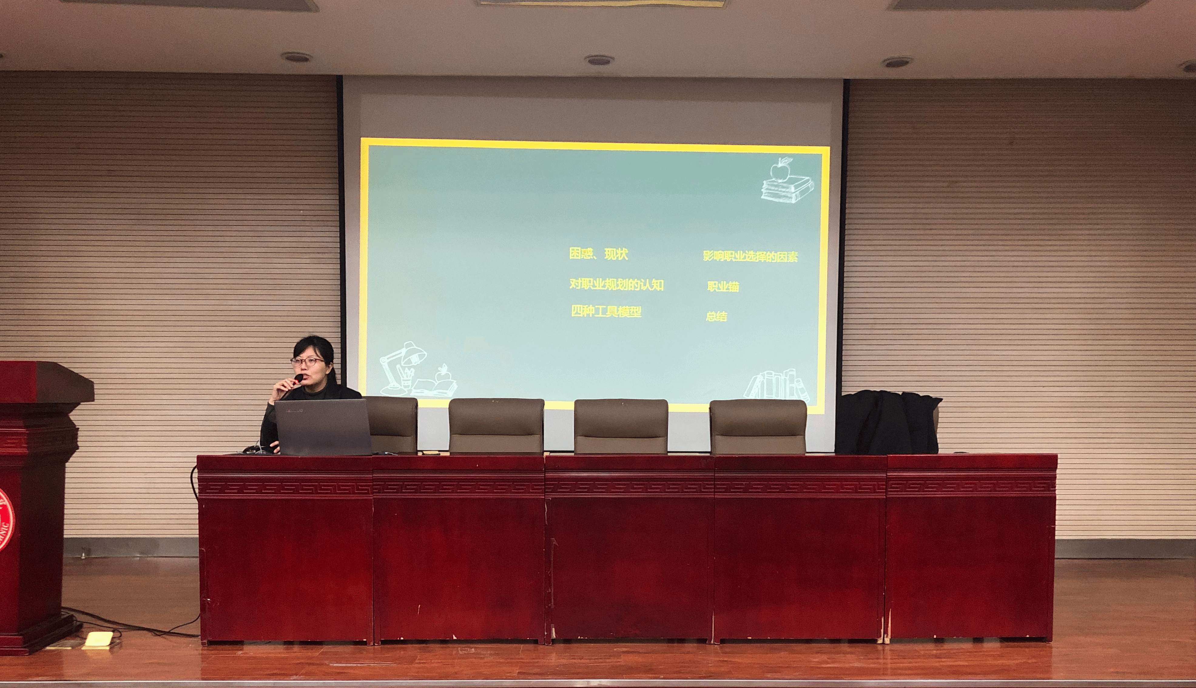 王娜以“影响职业选择的因素”为主题,以幽默风趣的讲解方式告诉大家要做到“知己”“知彼”,了解自己的性格、兴趣、价值观、技能,方能做好适合自己属于自己的生涯规划。期间,王娜和同学们互动,耐心解答了几位同学的困惑,相信在王娜讲师的精彩讲解后,同学们能为自己的大学以及人生做出合理的规划,实现自己的人生价值。