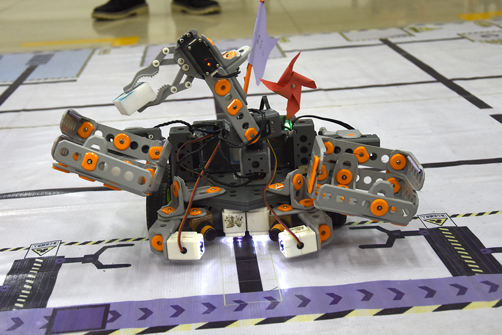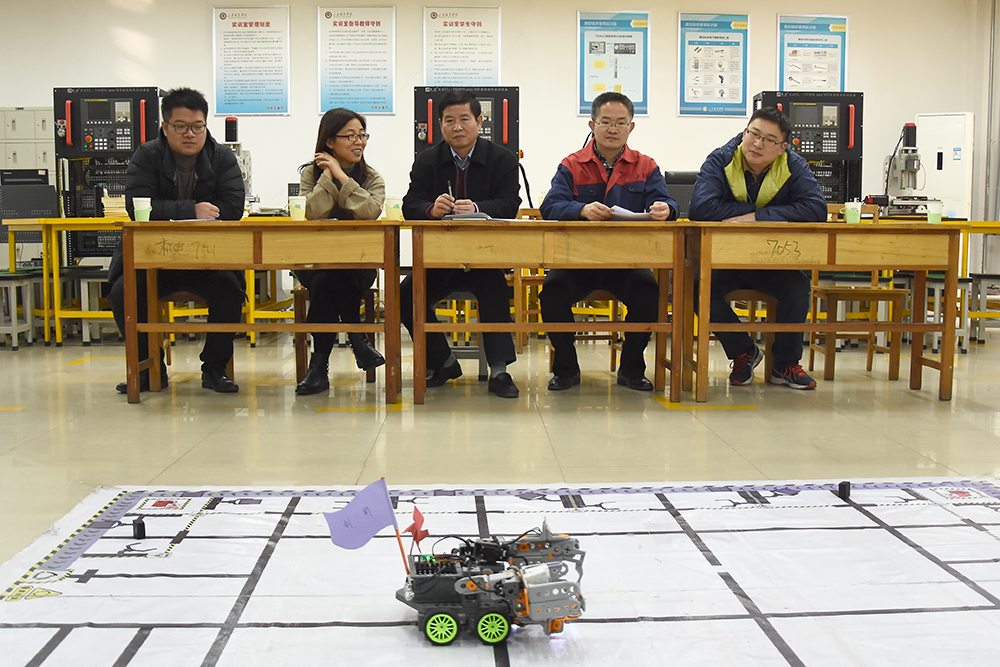 本次大赛分为答辩会和机器人搬运竞技比赛。答辩过程中,同学们就各自课题的研究背景,技术架构、实施方法和研究成果等作了精彩介绍。课题内容选题广泛,涵盖人工智能、计算机视觉等学术研究领域,涉及果实自动剥皮机、人工智能马桶和现实生活的人脸表情识别等多个真实应用场景。评委们对课题的技术手段、参数指标、改进方法等提出了指导性意见。机器人搬运竞技比赛是由学生自主动手编程并制作物料,让机器人搬运。比赛现场进行了激烈的竞争。比赛中,每支队伍有10分钟调试时间,比赛限时两分钟,共两次机会,取最短时间为最后成绩。在这场精准与速度的比拼中,各参赛队伍状态极好,都发挥出了自己的水平。智能机器人看似简单的走路,实际上是大量的理论知识和实践操作的结合。本赛事激发了参赛队员的合作精神,也是对参赛选手实践能力的考量。