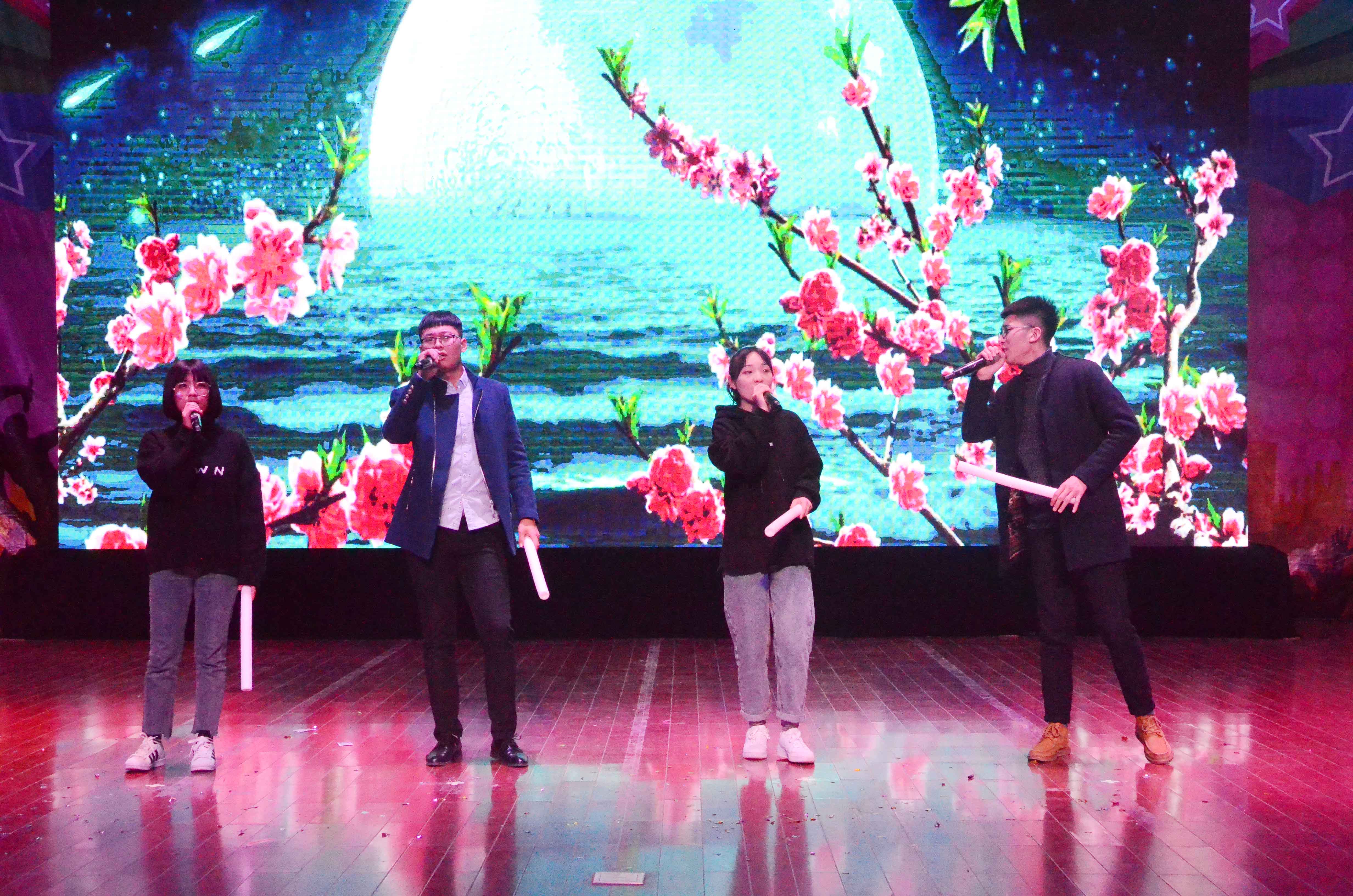 极具创意的小品《人在囧车》《中国富人秀》《青春校园你怀念吗》趣味盎然,用诙谐幽默的表演,展现出了现在社会真实的一面,在给大家带来欢笑娱乐的同时也引人深思;晚会最惊喜的莫过于抖音歌曲串烧以及舞蹈串烧,一首首经典歌曲感动全场,一个个舞蹈震撼人心。微信互动、游戏环节更是为晚会增添了许多亮点,使晚会氛围达到了活跃的顶峰。场上的观众欢呼雀跃、激情四射。整场晚会内容流行与古典兼收,温情与火热并举。在歌曲《相亲相爱》的动感旋律中,领导老师上台与全体演员合影留念,晚会在和谐、欢乐、美好、融洽的氛围中圆满结束。