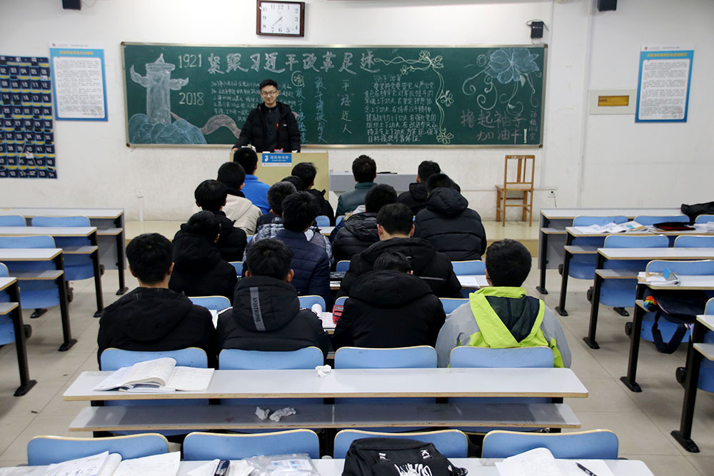 班会中,各班同学一起回忆改革开放的历史。1978年5月,一篇名为《实践是检验真理的唯一标准》的文章,掀起了席卷中国的真理标准大讨论,撬动了改革开放的哲学杠杆,为改革开放迈出了重要的一步。