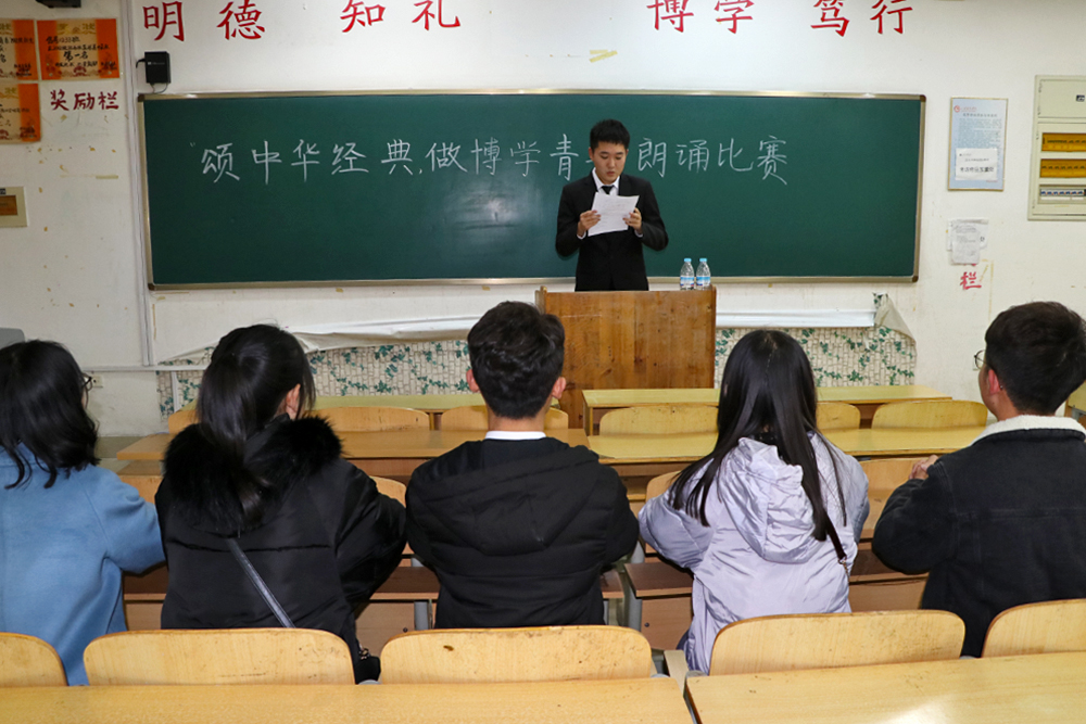 沐浴经典,诵声琅琅。为陶冶学生的高雅志趣,展现文化底蕴,11月21日,城市轨道交通系举办“诵中华经典,做博学少年”朗诵比赛决赛。