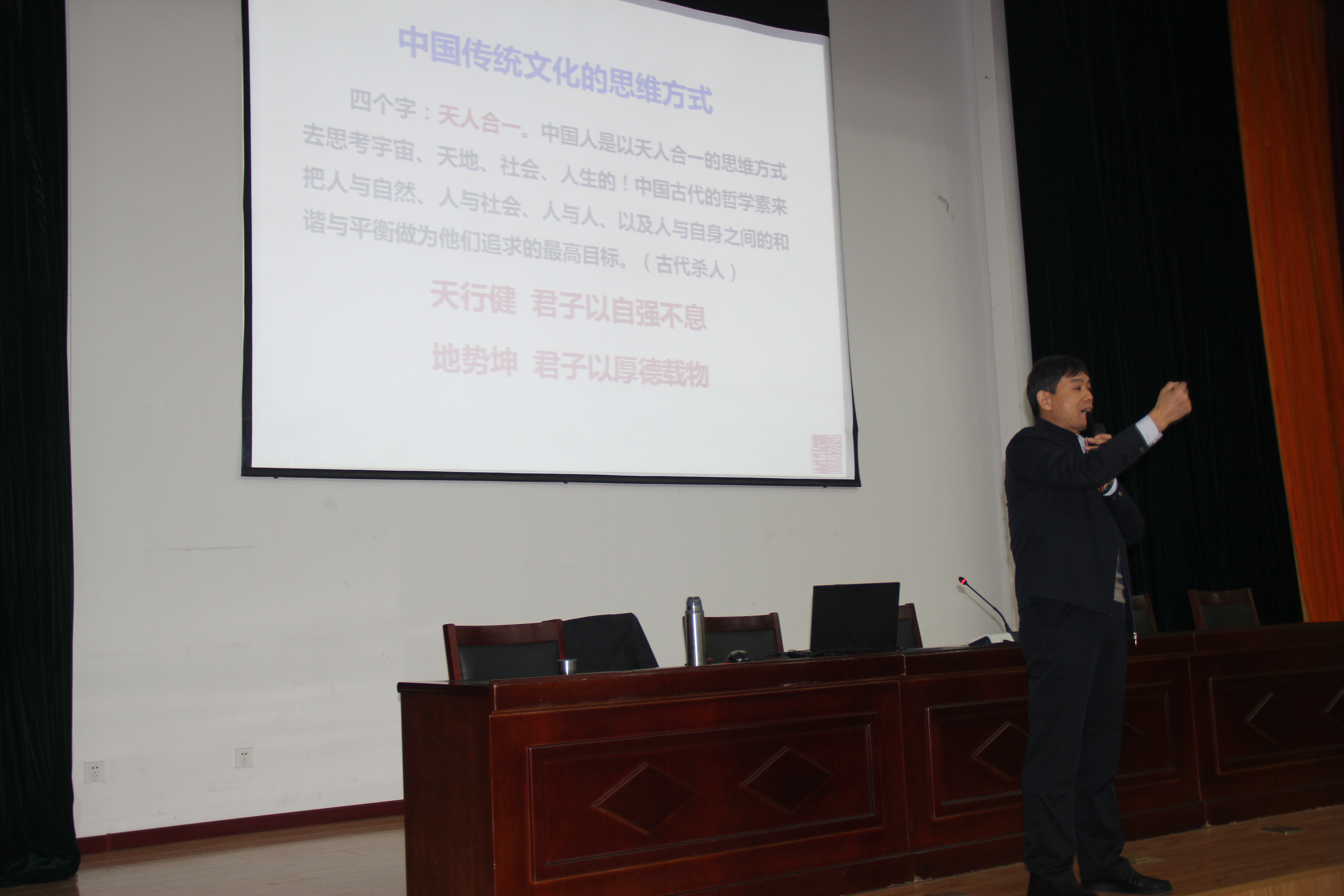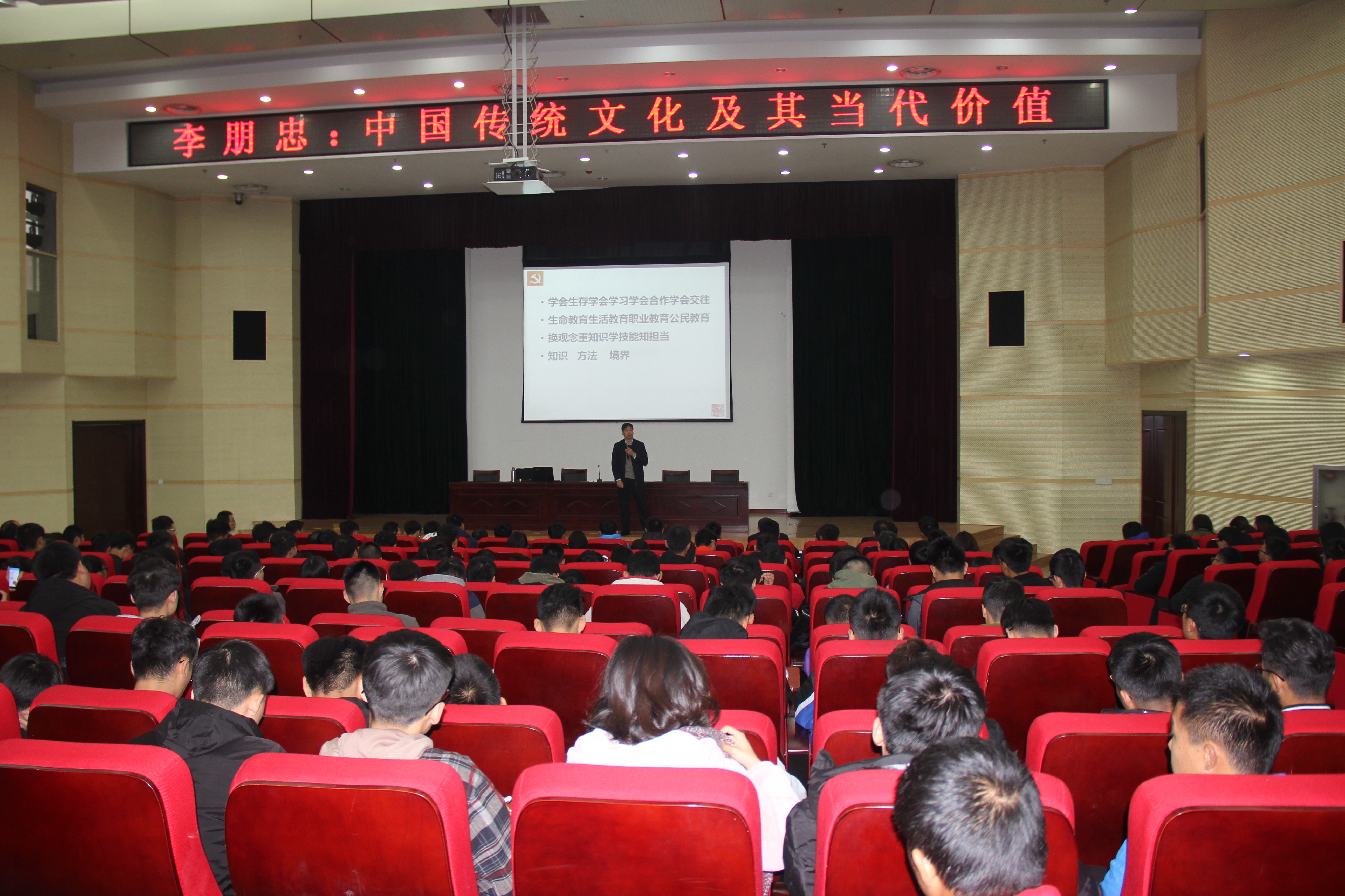 11月8日下午,基础部(思政部)邀请省委教育工委名师工作室主持人、济南大学马克思主义学院李朋忠副教授作“中国传统文化及其当代价值”的讲座。基础部(思政部)教师和铁道供电与电气工程系、铁道车辆与机械工程系学生共400余人在图书行政楼西报告厅聆听了讲座。本次讲座博古通今、视野开阔,而且李教授语言生动、善于结合大学生成长成才需求进行启发教育,增强了师生的文化自觉和文化自信。
