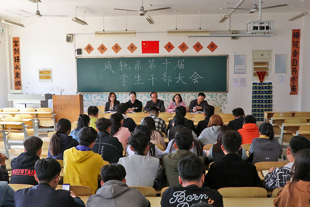 为进一步加强学生干部队伍建设,充分发挥学生干部自我教育、自我管理、自我服务、自我监督的作用,11月1日,城市轨道交通系组织召开第十届学生干部大会。系党总支书记郭忠相,学工办主任兼团总支书记张娜,辅导员丛树胜、武文玉、孙梅玲等出席大会。