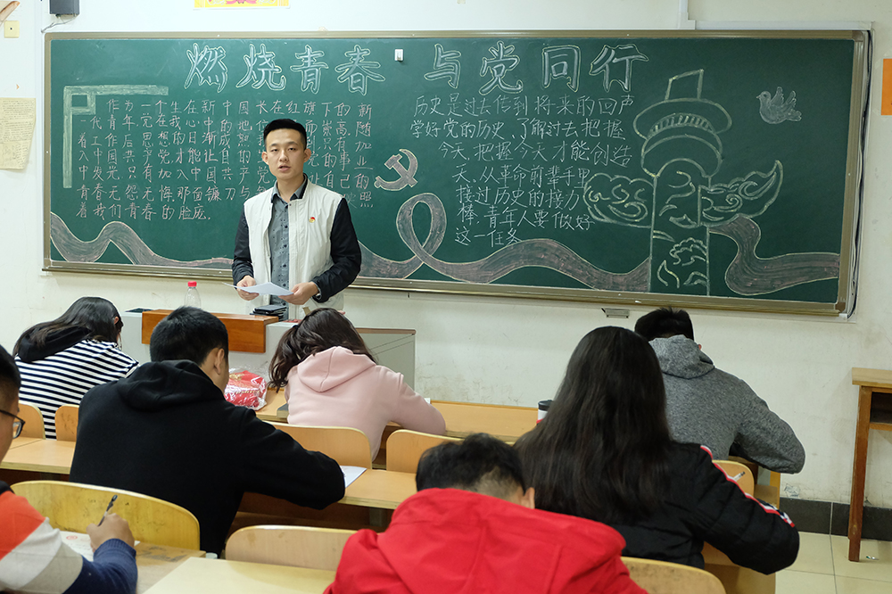 学生党支部的党员、入党积极分子深入各班级,介绍党史知识、畅谈个人的经历体会,勉励大家树立远大理想和坚定政治信仰。新生们认真听讲,仔细记录,踊跃发言。学生党员韩笑简述了中国共产党九十多年的奋斗历程,他表示虽然有过坎坷、有过曲折,但我们党都经受住了严峻的考验,实践证明,中国共产党是一个伟大的、光荣的、正确的党。入党积极分子鞠迎强谈到实现中华民族伟大复兴中国梦,他认为看似高远,实在当下,它融入到我们每一天的工作、学习、生活之中。作为新时代青年就要紧跟党中央,在奋斗中实现青春梦想。入党积极分子李秉昌表示,作为学生干部要严格工作标准,不断地提高政治素质,积极践行社会主义核心价值观。