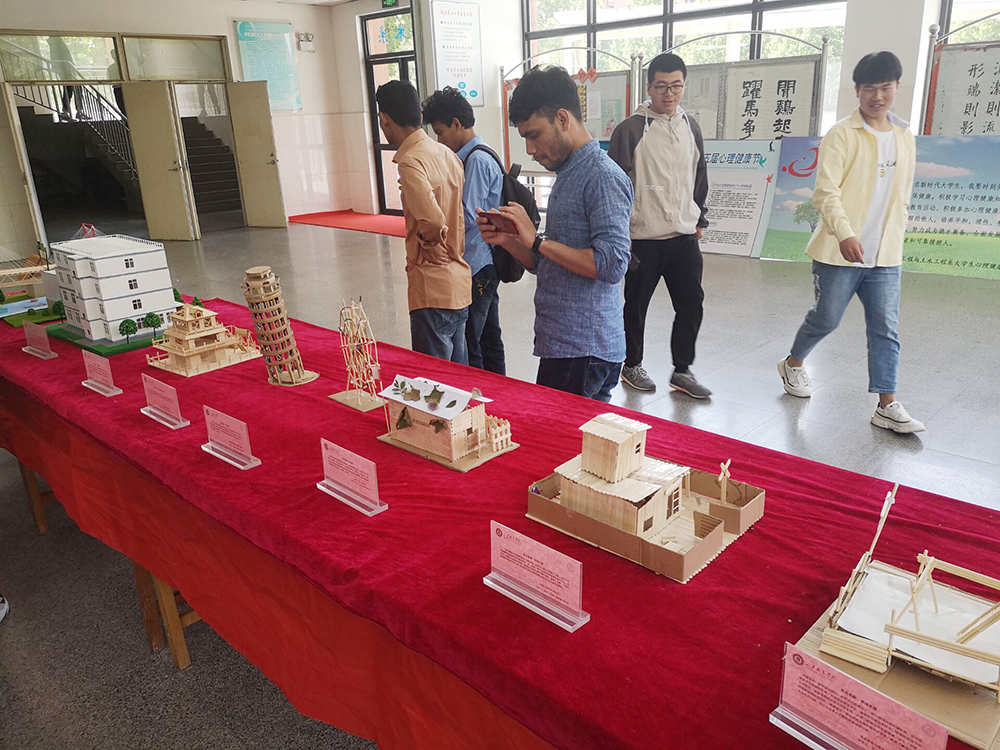 5月8日,铁道工程与土木工程系举办了建筑模型设计与制作成果展示活动,吸引了大批师生驻足参观。此次展览的模型均为我系同学根据世界著名建筑制作。罗马式斜塔、玲珑阁、东方红等模型展现了建筑大师们的超凡思维与建筑魅力,长城、田园之家等建筑模型体现了中国特色和风格,不同的建筑风格、功能布局、结构形式以及色彩搭配充分体现出了设计者对建筑设计、建筑模型的热爱。展览期间,负责人员从设计理念、作品细节、结构特色、创意创新等方面向同学们作讲解,有的同学还拿出手机在喜欢的模型前拍照留念。