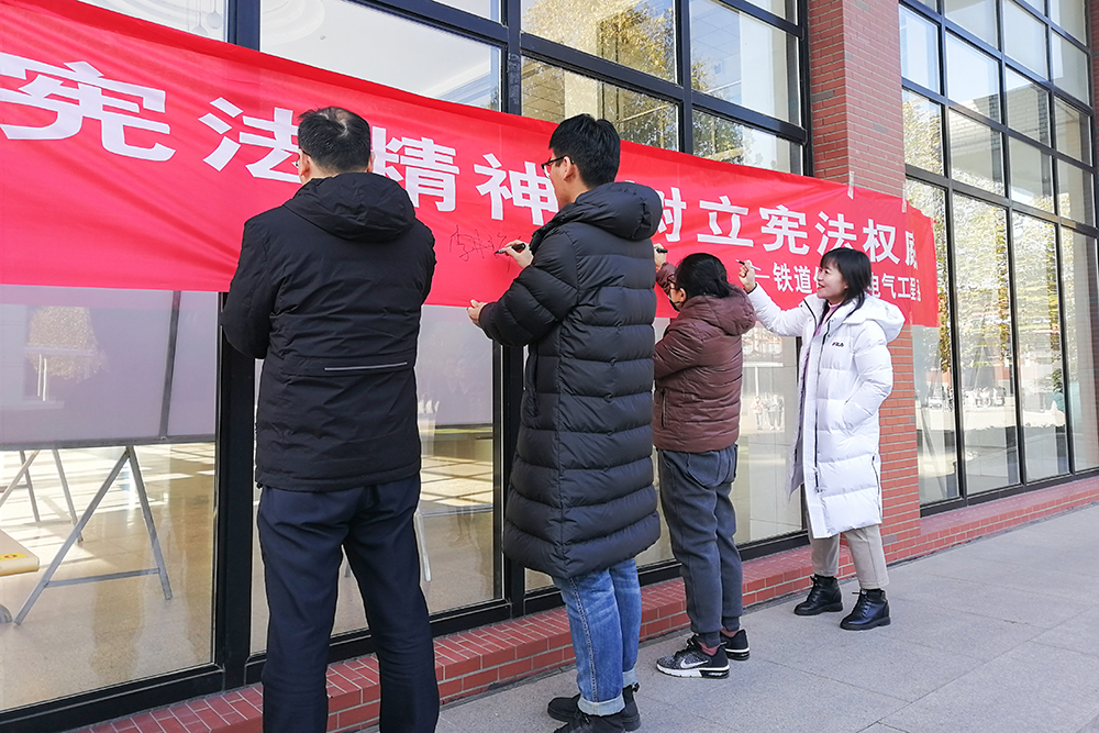 12月4日,在第六个国家宪法日之际,铁道供电与电气工程系开展了“横幅签名表信心”活动,旨在宣传宪法知识,弘扬宪法精神,引导师生增强宪法意识、坚定宪法自信。