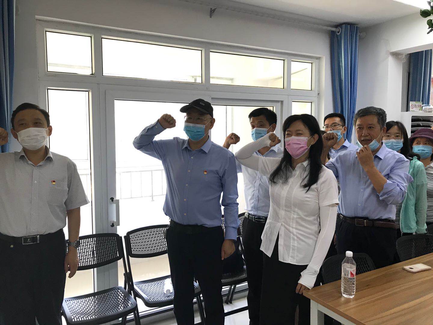 为庆祝党的九十九岁生日,7月1日,基础部(思政部)党总支和机关党总支学团党支部共同前往高新区孙村街道彩虹湖社区开展党员活动。