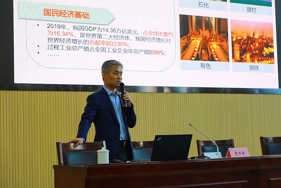为提升我校教职工的科研和社会服务能力,加强校企合作、产教融合。12月22日,由科学技术与社会服务处牵头、铁道学院承办的学术讲座在图书行政楼东报告厅举行。讲座邀请到了享受国务院政府特殊津贴的山东省有突出贡献的中青年专家、山东省新旧动能转换重大工程“十强”产业智库首批专家、山东金特装备科技发展有限公司总经理曹怀祥博士,做了题为“过程工业的智能制造——在线检测与智能调控”的报告。铁道学院院长王培林,科学技术与社会服务处王广勇及全校无课教职工,部分学生代表参加了讲座。