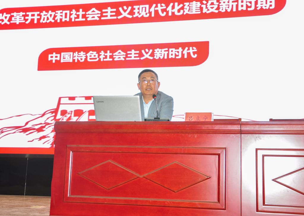 为加强书院师生党史学习教育工作,4月12日,三味书院党支部书记吕立宁在图书行政楼西报告厅讲授“中国共产党百年辉煌”主题党课,三味书院全体教师、2018级部分在校学生参加党课。