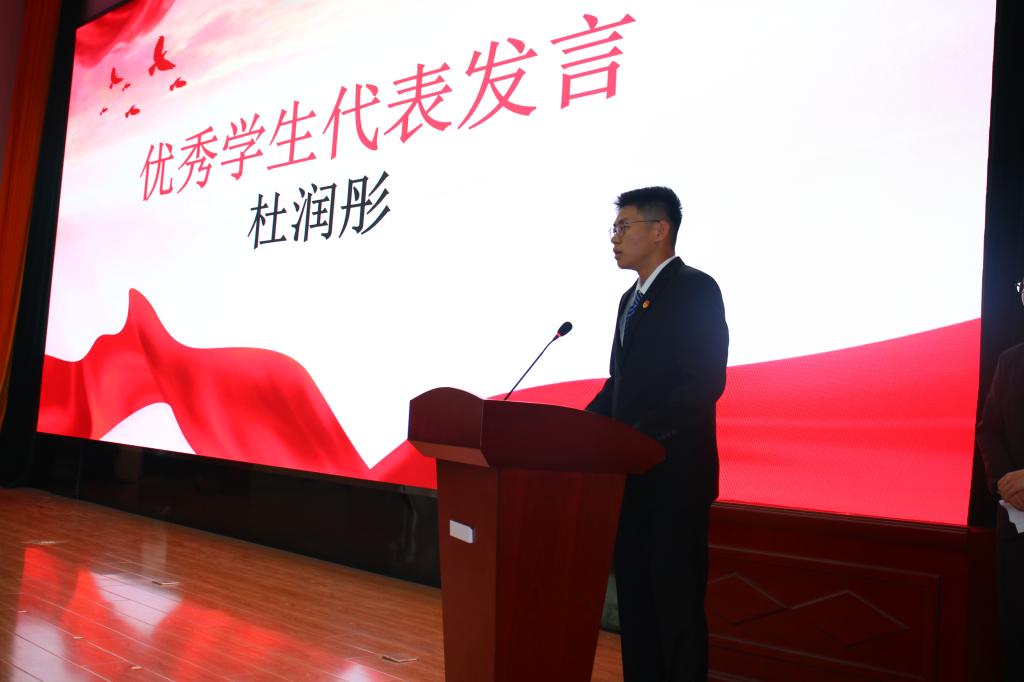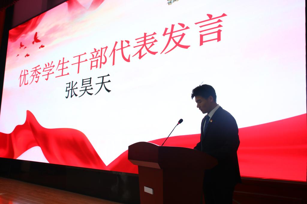 杜润彤代表获表彰“优秀学生”、张昊天代表获表彰“优秀学生干部”进行发言。