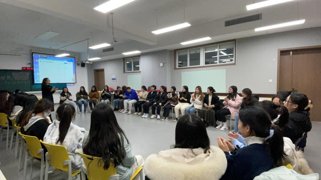 活动以“雨点变奏曲”暖场游戏开场,带领同学们专注当下,积极投入团队中。随后,在“找找我们的共同点”中同学们按照“地域”“出生月份”“爱好”等找到与自己相同的同伴交流认识,打破了学生会组织各部门之间的隔阂,拉近了彼此距离。大家分享了进入学生会后的“最满意”“最高兴”“最关心”“最担心”“最想做”的“五个最”,提出了自己对工作和学习的一些看法。孙梅玲还对大家关心和担心的事情进行了回应和引导,强调身为学生干部要把学习放在第一位,对自己的学习、工作以及生活要有合理的规划和安排,分享了一些时间管理和人际沟通的小技巧,为大家打消了工作中的顾虑。