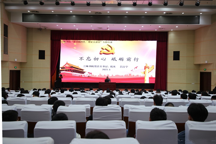 为推动学习贯彻习近平新时代中国特色社会主义思想主题教育走深走实,5月22日,三味书院在西报告厅开展“建功新时代·理论大讲堂”理论宣讲活动。三味书院党总支书记兼院长吕立宁主讲,学生干部及入党积极分子共400余人参加。