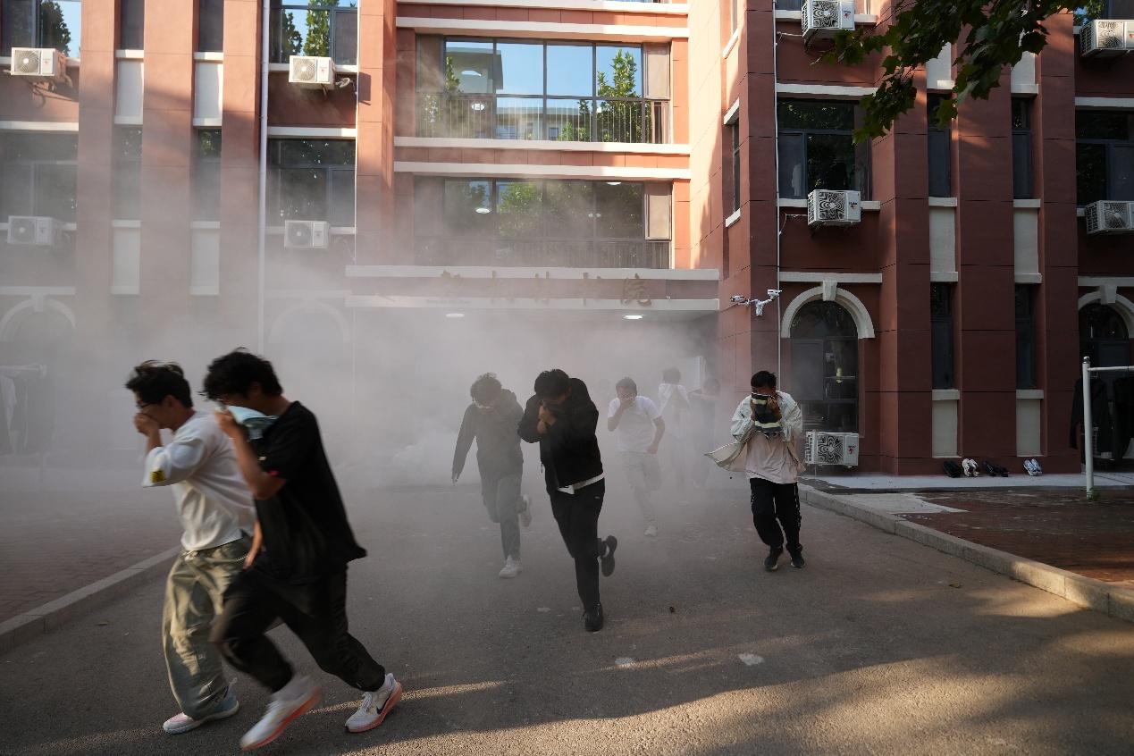 演练过程中,随着哨声响起,新生们按照要求有序撤离,各楼层安全员坚守岗位,及时疏导人流、提醒避让,避免拥挤踩踏风险。在抵达指定集合地点后,各书社有序清点人数。庄须罡对本次演练活动进行了总结,他结合近年高校火灾案例,希望新生将演练中学到的疏散技巧、灭火方法转化为日常习惯,自觉抵制宿舍安全隐患,带动身边同学共同维护安全环境,真正让“安全第一”的意识扎根心中。