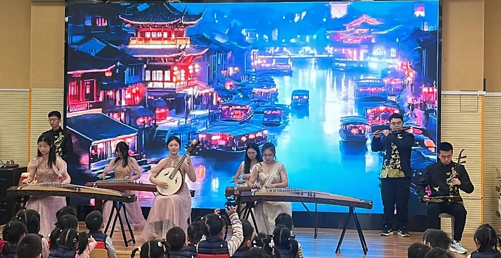 活动伊始,志愿者们借《绝美大唐》选段,引导孩子们初步感受民族乐器如何承载文化、记录历史。随后,一曲《玉盘》,以清新悠扬的旋律,鼓励他们在启蒙阶段亲近传统艺术,体会中华文化的深厚魅力。