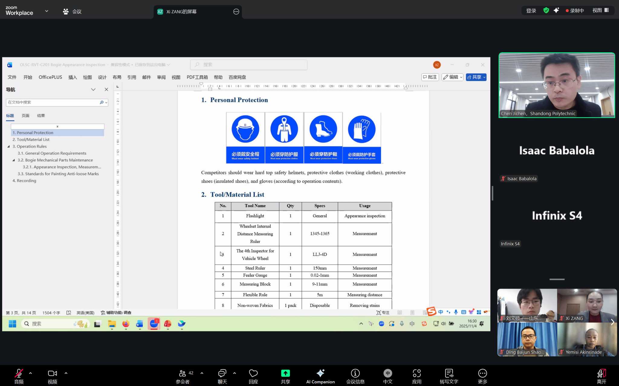 在“轨道车辆技术模块C技术规程”报告中,陈济臣以国际锦标赛技术要求为核心,围绕转向架外观检查、零部件更换、保压实验及零部件测量等4份技术规程及配套的10份作业记录卡,逐点拆解核心条款、操作要点及安全规范。报告采取“理论—案例—实操”结合的模式,帮助各国学员精准掌握规程条款,筑牢实操理论根基,备战国际锦标赛。