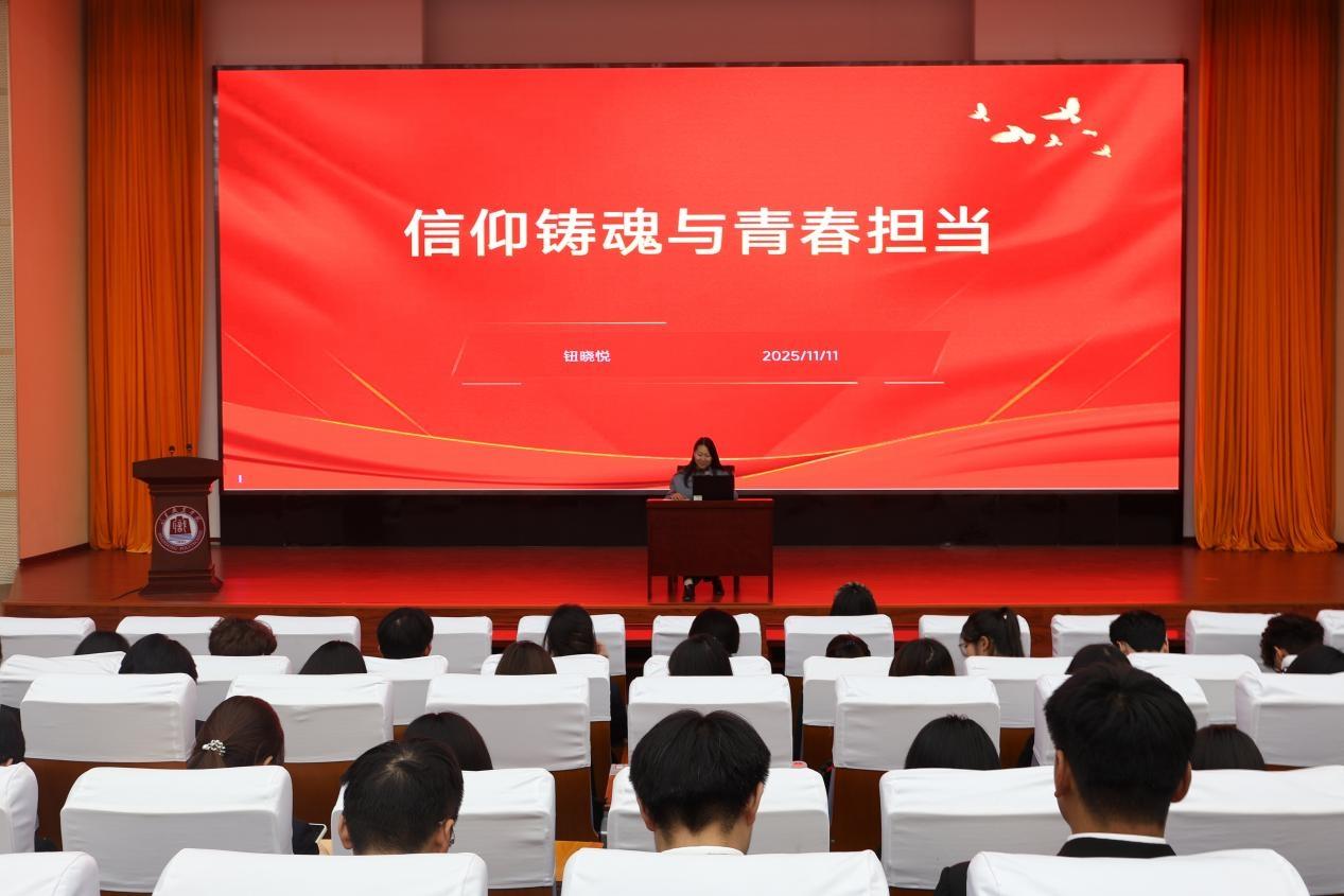 钮晓悦代表书院对培训班的顺利开班表示祝贺。她以《信仰铸魂与青春担当》为题作首场报告。她指出,“青马工程”是培养青年政治骨干的重要平台,希望学员们珍惜学习机会,通过培训实现思想“充电”、政治“淬炼”。她结合高职教育特点提出四点要求:一要铸牢信仰之魂,做“真学真信”的青年马克思主义者;二要练就过硬本领,做“德技并修”的青年实干家;三要涵养高尚品德,做“引领风尚”的青年表率;四要扛起时代重任,做“知行合一”的青年奋斗者,努力成长为堪当民族复兴重任的青年骨干。