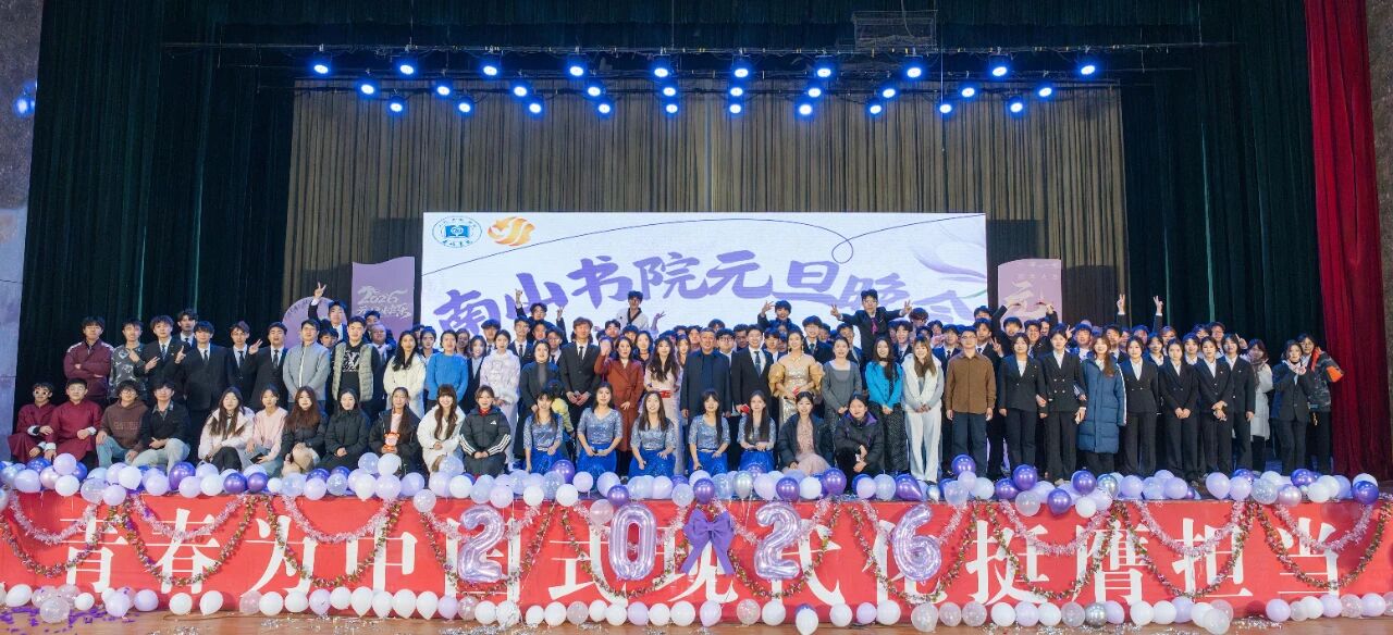 12月22日,南山书院2026年元旦晚会暨星耀南山颁奖典礼在南益馆举行。书院全体辅导员、学生代表共900余人参加活动,“青韵南山”视频号及抖音平台同步直播。